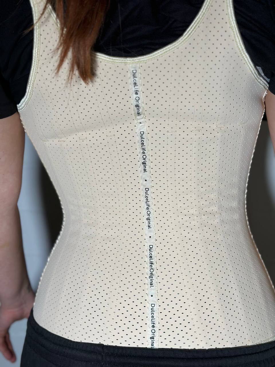La faja reductora chaleco de Látex térmico Dulcelife Original tipo “faja chaleco” sin duda es una de las fajas más vendidas y más recomendadas entre nuestras compradoras . Esta faja tiene varias funciones y es lo que la hace tan especial y completa: Uno de los mayores beneficios que ofrece nuestra “faja chaleco” es ayudar a reducir el volumen del vientre, cintura y espalda, y como esta faja cubre la espalda por completo evita que se salgan los típicos “rollitos” de grasa que solemos presentar muchas mujeres a la altura del sujetador .